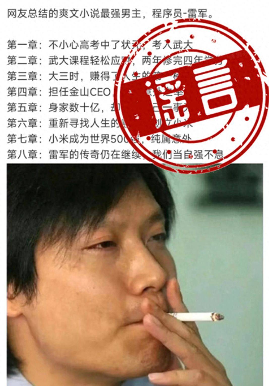 最近在网络上有疯狂的流传着几张关于雷军的图片,里面是直接用“爽文”的口吻,来描述了雷军的一路走来。尤其是《一不小心高考中了状元》《上市公司邀我当总经理》《小米成为世界500强》等,可以说是让人看的心痒痒,着实很羡慕雷军的生活。