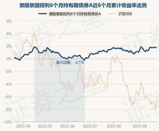 9月22日,景顺景颐招利6个月持有期债券A最新单位净值为1.0711元,累计净值为1.1616元,较前一交易日下跌0.01%。历史数据显示该基金近1个月上涨0.43%,近3个月上涨1.78%,近6个月上涨1.72%,近1年上涨1.7%。该基金近6个月的累计收益率走势如下图: