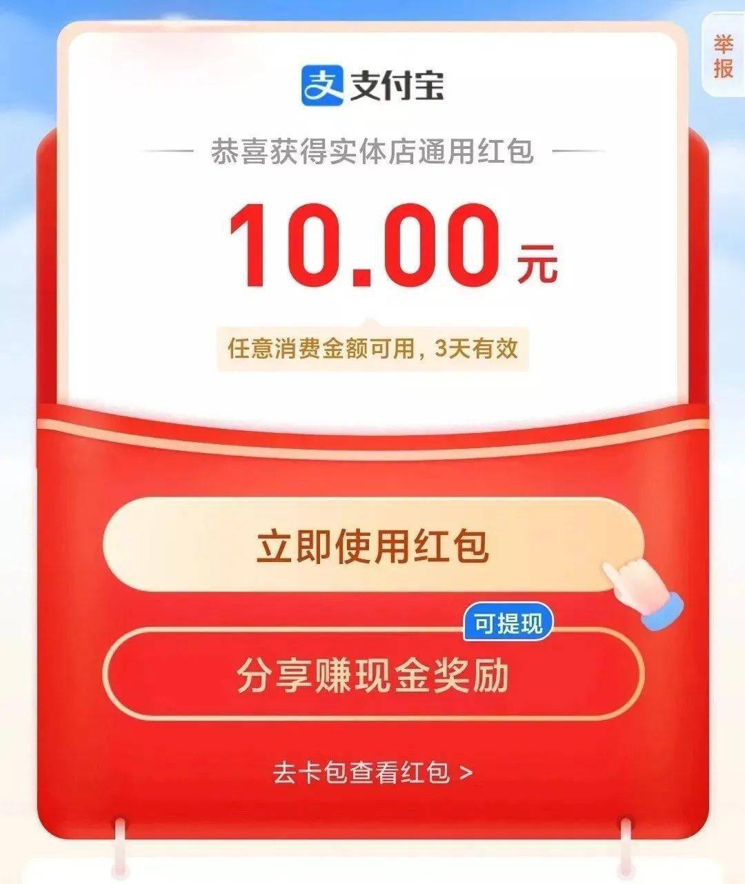 昨天开始,支 付 宝又撒钱了。我平常对这种活动是不屑一顾的,毕竟商人策划出的活动,能给你多少好处?直到...我昨天“手贱”扫码试了试,我滴天,十块钱无门槛红包!线下实体店消费可以使用。