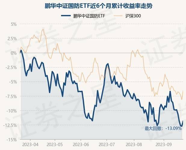9月22日,鹏华中证国防ETF最新单位净值为0.7468元,累计净值为1.4936元,较前一交易日上涨0.96%。历史数据显示该基金近1个月下跌2.61%,近3个月下跌4.38%,近6个月下跌11.87%,近1年下跌24.97%。该基金近6个月的累计收益率走势如下图: