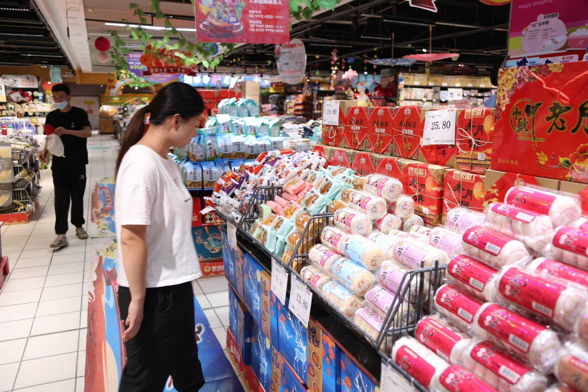 “中秋节快到了,今天带着孩子来逛超市,看到今年的月饼比往年的口味要多,价钱也很实惠,我想多买一些,送给亲戚朋友。”消费者刘兰说。
