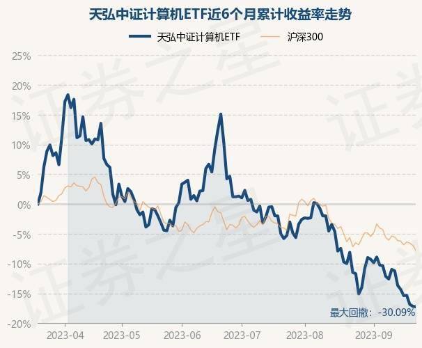 9月21日,天弘中证计算机ETF最新单位净值为0.8141元,累计净值为0.8141元,较前一交易日下跌0.12%。历史数据显示该基金近1个月下跌8.04%,近3个月下跌24.95%,近6个月下跌17.25%,近1年上涨10.6%。该基金近6个月的累计收益率走势如下图: