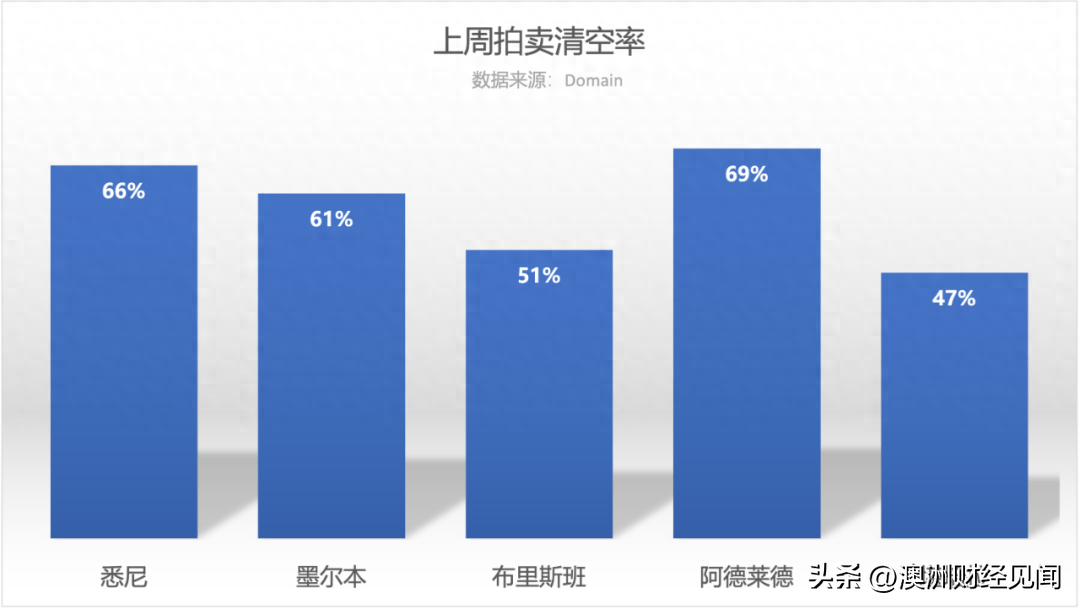 澳大利亚房地产两大市场悉尼和墨尔本最终清空率分别为67.3%和63.3%,墨尔本63.3%清空率也是跌至五周以来的最低点。