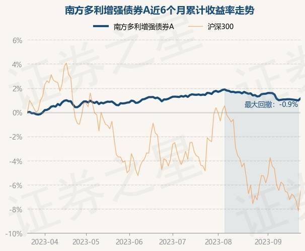 9月22日,南方多利增强债券A最新单位净值为1.1497元,累计净值为1.9416元,较前一交易日上涨0.16%。历史数据显示该基金近1个月下跌0.42%,近3个月上涨0.05%,近6个月上涨1.12%,近1年上涨1.5%。该基金近6个月的累计收益率走势如下图: