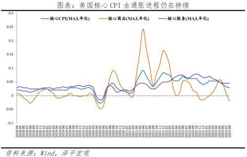服务去通胀进程已经开启,但放缓幅度相对较小。权重较大的房租分项,每个月放缓程度不足10bp、且有所反复;例如主要居所租金从上月的0.42%反弹至0.49%,业主等价租金(OER)从上月的0.49%降至0.39%。