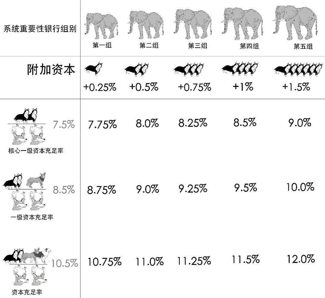 第一组到第五组的附加资本要求分别为0.25%、0.5%、0.75%、1%和1.5%。
