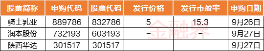 下周(9月25日-9月29日)A股市场3只新股发行,其中创业板1只,沪市主板1只,北交所1只。具体安排如下,周二1只,骑士乳业(北交所);周三2只:润本股份(主板)、陕西华达(创业板),上述公司股票的申购将在下周陆续开放。