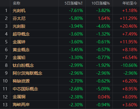 一句话概括,跌了两个月的AI核心板块——CPO和算力终于王者归来;最近一个月轮番表演的光刻胶/半导体以及医药股则本周陷入调整,但幅度并不大。