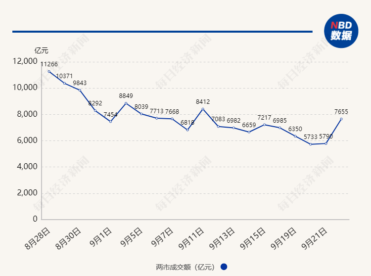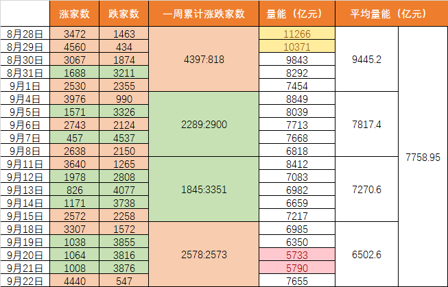 3.量能方面,结合下面这张走势图能更清楚地看到,两市成交额近期的“地量”就是5700多亿,几乎为“起点日”8月28日的一半。
