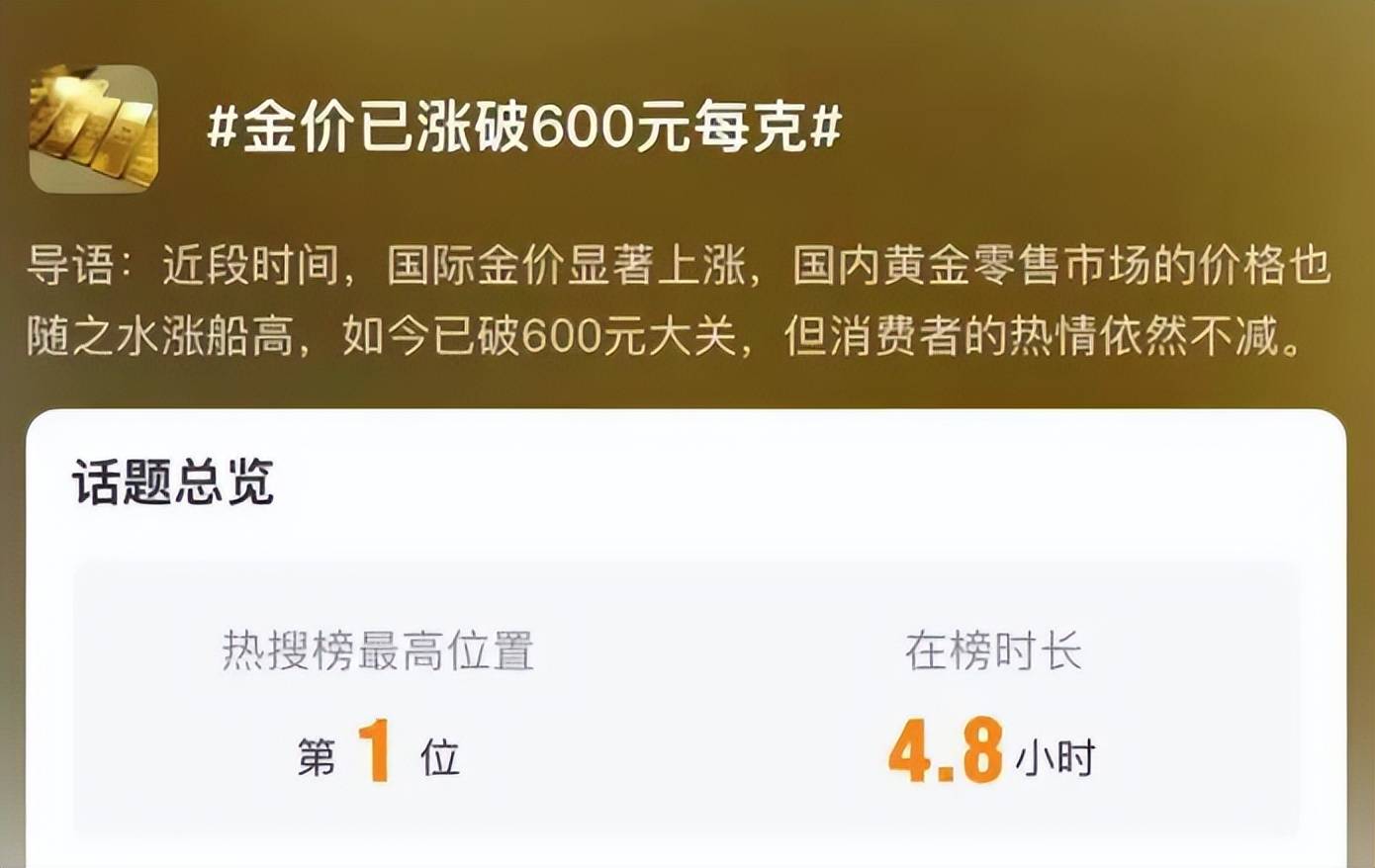 黄金零售价突破600元/克,创下2008年以来的历史新高。