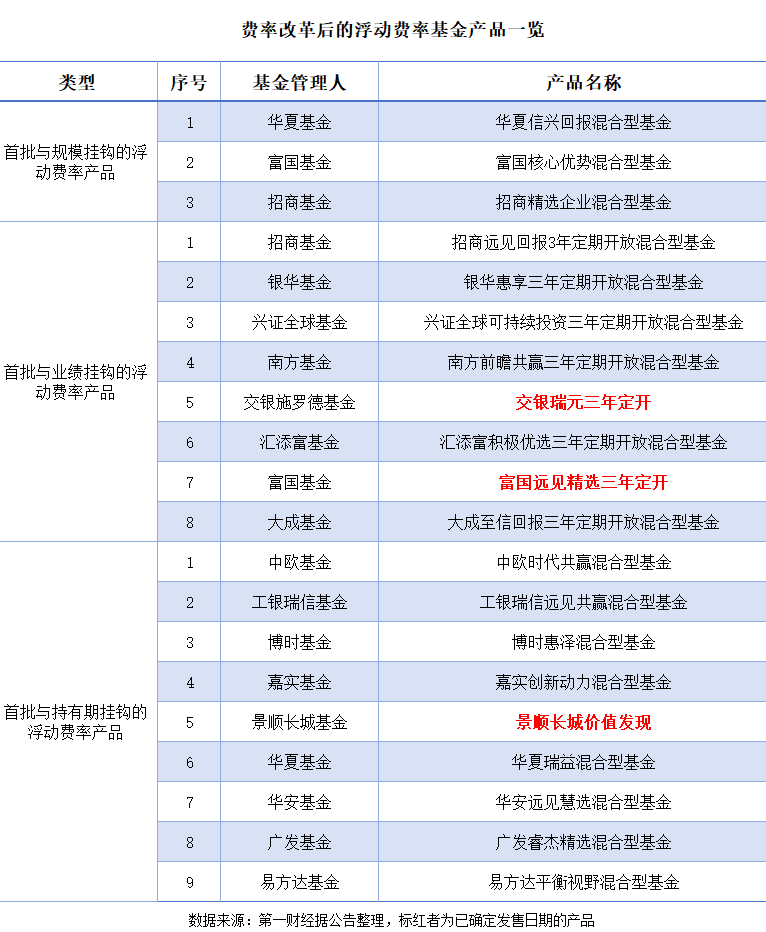 证监会此前也曾表示,行业将在坚持以固定费率产品为主的基础上,按照“成熟一款、推出一款”的原则,研究推出更多类型浮动费率产品,完善公募基金产品谱系,为投资者提供更多选择。