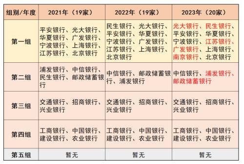 记者对比2022年名单发现,今年其他入选银行及分组没有发生变化,仅有些在组内排名有所变化。