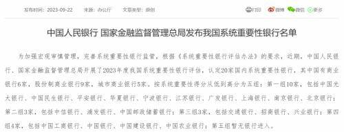 2023年度我国系统重要性银行名单出炉。