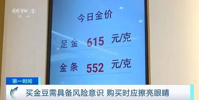 据央视财经,在深圳某品牌金店里,工作人员告诉我们,店内当日金饰的价格为615元/克,金豆豆的价格和金饰一样。