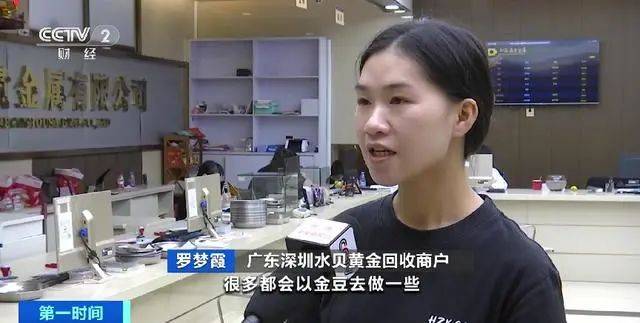 广东深圳水贝黄金回收商户 罗梦霞:因为金豆在工艺上比较简单,工费成本也比较低,很多都会掺杂一些其他金属,会影响它的纯度,所以我们在回收的过程中就要检测杂质。