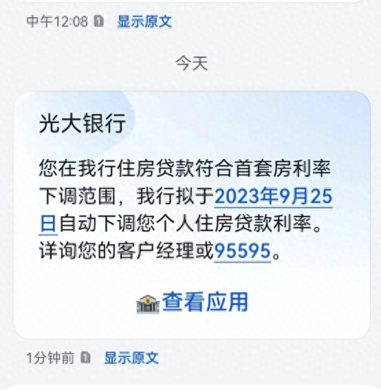 中信银行、光大银行、兴业银行等多家银行于近日陆续向符合存量首套住房按揭贷款利率调整条件的客户发送短信通知,调整后的结果会通过短信方式通知本人。