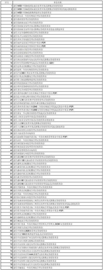 建信基金管理有限责任公司旗下79只基金招募说明书(更新)全文于2023年9月25日在本公司网站(http://www.ccbfund.cn/)和中国证监会基金电子披露网站(http://eid.csrc.gov.cn/fund)披露,供投资者查阅。具体基金明细如下: