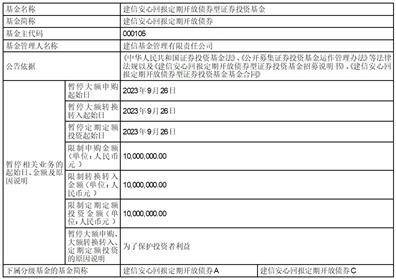 注:根据法律法规和基金合同的相关规定,建信基金管理有限责任公司(以下简称“本公司”)决定自 2023年9月26日起,建信灵活配置混合型证券投资基金(以下简称“本基金”)取消单日单个基金账户累计申购(含定期定额投资及转换转入)本基金基金份额的金额不超过5万元(含)的限制,恢复办理大额申购、大额转换转入业务。