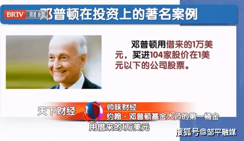 节目开始,杜帅教授分享了邓普顿在投资上的一个著名案例。1939年第二次世界大战期间,当时二十六岁的邓普顿用借来的1万美元买进104家股价在1美元以下的美国公司的操票,每家都买100美元的股份,总成本是1.4万美元。4年之后,邓普顿卖出这104家公司的股票,拿回超过4万美元的本金和利润,获利超过了300%。