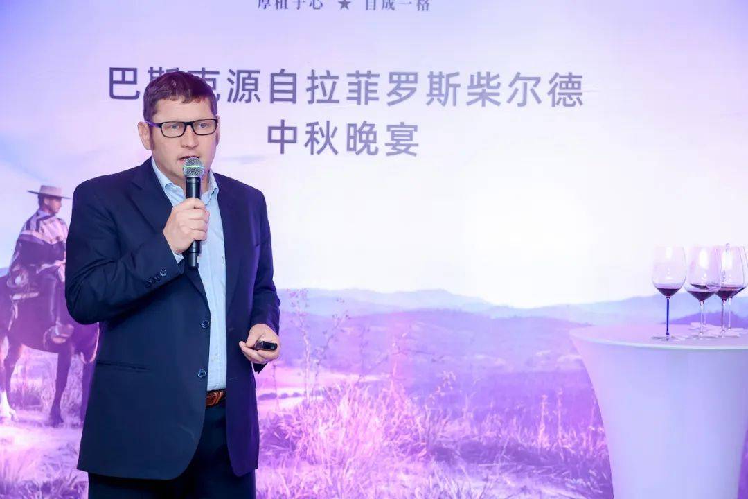 晚宴中,巴斯克酒庄总经理,同时也是拉菲罗斯柴尔德男爵酒业公司旗下阿根廷产区凯洛酒庄(Bodegas CARO)总经理的菲利普·赫莱先生由衷地感谢了广大经销合作伙伴对巴斯克品牌的支持,并分享道:“巴斯克酒庄拥有出色的风土条件,在3,600多公顷的土地上,团队仅用了约670公顷种植葡萄。酒庄的每块葡萄园都有着独特的风土特征,我们的团队根据葡萄园位置、气候的特点来精准地种植不同的葡萄品种,以确保产出能够达到拉菲罗斯柴尔德男爵酒业公司高标准的果实。酒庄团队更通过促进酒庄的生物多样性、栽种更多植物等方式,使这里成为了一个多元的生态系统。希望通过与合作伙伴的携手,能够在未来使更多的中国美酒爱好者感受到巴斯克酒庄的魅力,爱上巴斯克酒庄及美酒。”