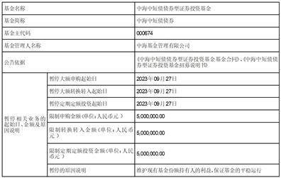 (1)为维护现有基金份额持有人的利益,保证基金的平稳运行,本公司决定从2023年9月27日起将单日单个基金账户累计申购(含定期定额申购)和转换转入本基金的限制金额调整为500万元;