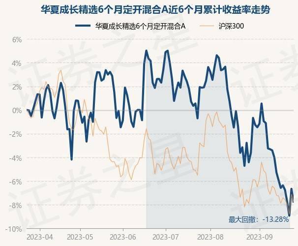 9月25日,华夏成长精选6个月定开混合A最新单位净值为0.8414元,累计净值为0.8414元,较前一交易日下跌1.16%。历史数据显示该基金近1个月下跌3.48%,近3个月下跌9.79%,近6个月下跌7.71%,近1年下跌18.59%。该基金近6个月的累计收益率走势如下图: