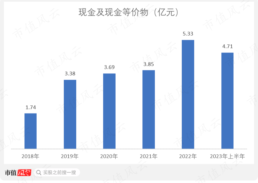随着现金流持续不断地流入,再加上公司于2019年IPO融了一笔资,这使得公司账上的现金越积越多。现金及现金等价物从2018年的1.74亿元增长至2023年上半年的4.71亿元。