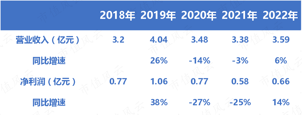 2022年净利润虽然同比增长14%至0.66亿元,但依然达不到2019年的水平,甚至连2018年的水平都不如。