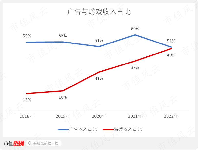 以工具软件为流量基础的广告业务依然是公司的主业,其占营收的比例保持在50%以上。游戏业务的收入占比则从2018年的13%迅速攀升至2022年的49%。游戏业务大有取代广告业务,成为公司新主业的趋势。