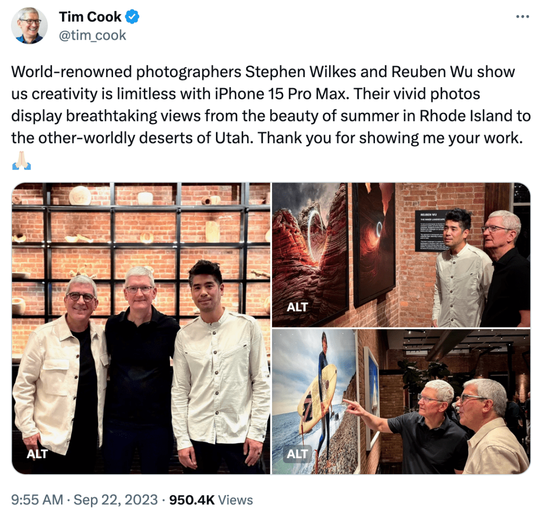 随后马斯克还在库克分享iPhone 15系列手机、Apple Watch、AirPods等新品热销时称:“我要买一台!”