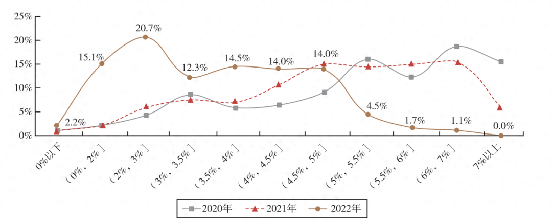 图 2020-2022年保险公司综合收益率区间分布
