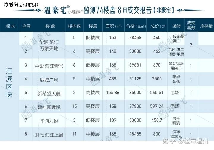 8月滨江区块成交情况(数据来源:温州豪宅,下同)