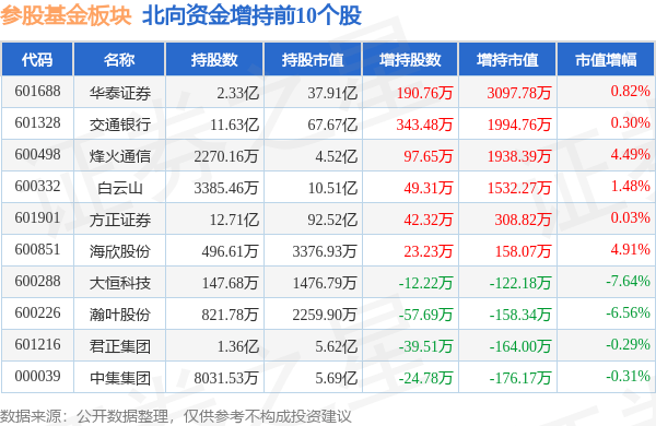 北向资金方面,当日参股基金板块北向资金持股市值为841.62亿元,减持13.78亿元。其中增持最多的是华泰证券,增持了0.31亿元。减持持最多的是中信证券,减持了1.63亿元。参股基金板块北向资金持股变动明细见下表: