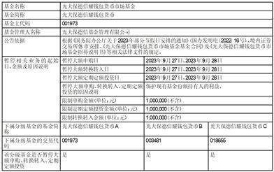光大保德信耀钱包货币市场基金“中秋节”、“国庆节”假期前暂停大额申购、基金