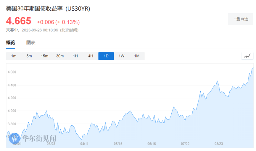 在这种环境下,长期美债收益率集体大幅上行,周一30年期美债收益率一度上行12个基点至4.64%,达到2011年4月以来的最高水平。