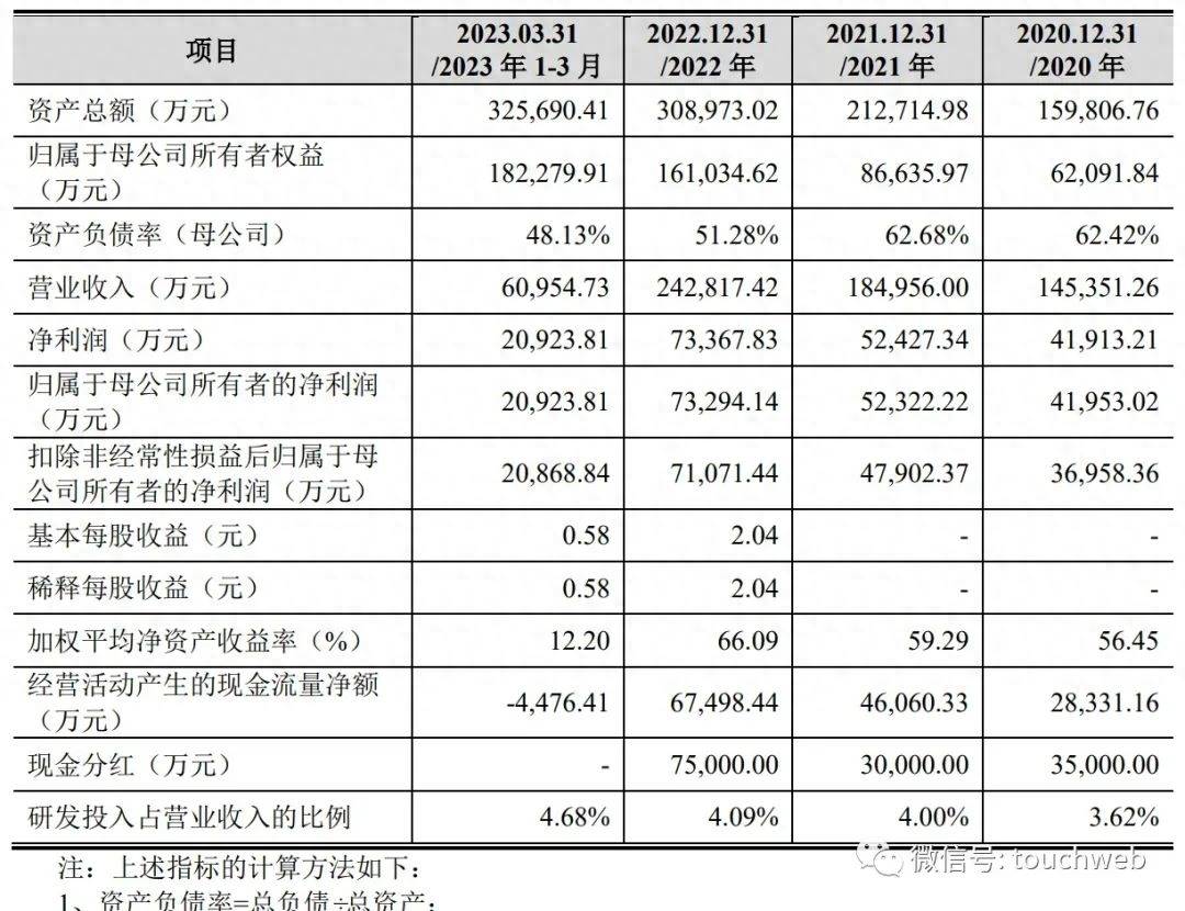 招股书显示,恒达智控2020年、2021年、2022年营收分别为14.54亿元、18.5亿元、24.28亿元;净利分别为4.19亿元、5.24亿元、7.34亿元;扣非后净利分别为3.7亿元、4.79亿元、7.1亿元。