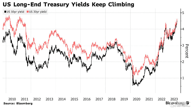 周一,10年期美债收益率上涨至4.54%,为2007年10月以来的最高水平;30年期美债收益率上涨至4.66%,为2011年4月以来的最高水平。