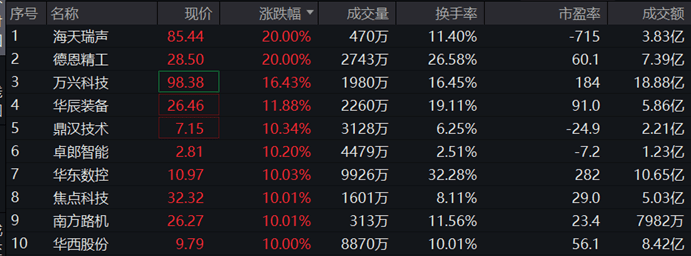 指数成份股中,截至2023年9月26日11:04,海天瑞声、德恩精工涨停,万兴科技、华辰装备等个股跟涨超10%。创耀科技领跌10.67%,君禾股份跌停,永安林业、利和兴等个股跟跌超9%。