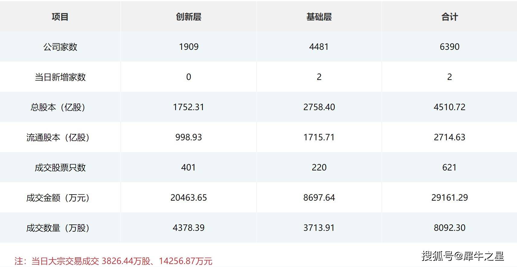 9月25日,新三板市场总成交额2.91亿元(前一交易日1.92亿元),成交股票家数621家(前值634家)。其中,创新层成交2.04亿元(前一交易日1.41亿元),基础层成交8697万元(前一交易日5134万元),做市转让成交4274万元(前一交易日4008万元)。此外,新三板盘后大宗交易共成交1.42亿元。