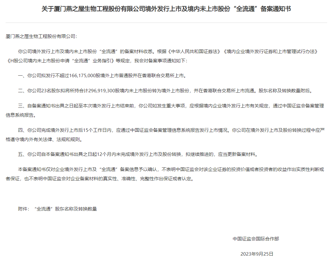 9月25日,证监会对有家有保、铭腾国际、星图国际和燕之屋4家企业境外发行上市备案通予以确认。其中,前3家为赴美上市企业,至此,共11家赴美上市企业完成备案(前8家分别为:新骏羊绒服饰、环球墨非、阿诺医药、图达通、文远知行、极氪、车车科技、浩希健康)。