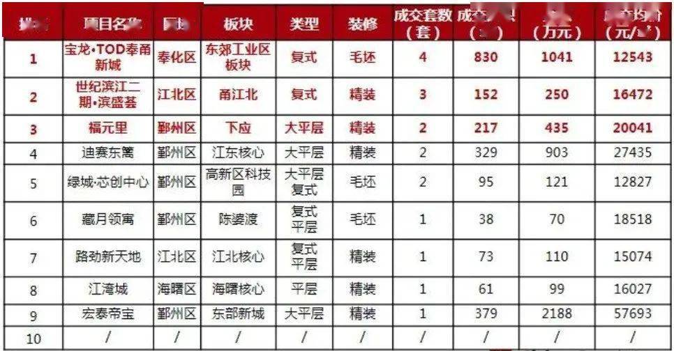 4.住宅成交套数排行