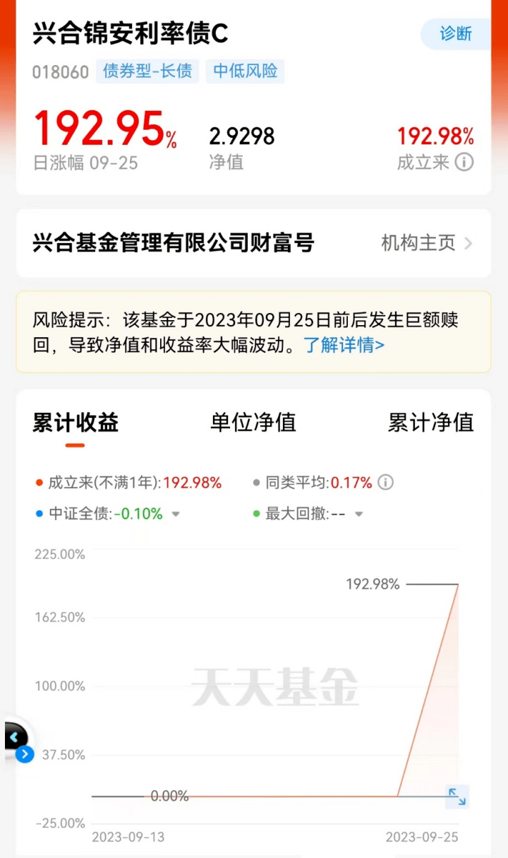 一只刚成立不到两周的纯债基金,突然暴涨192.95%!