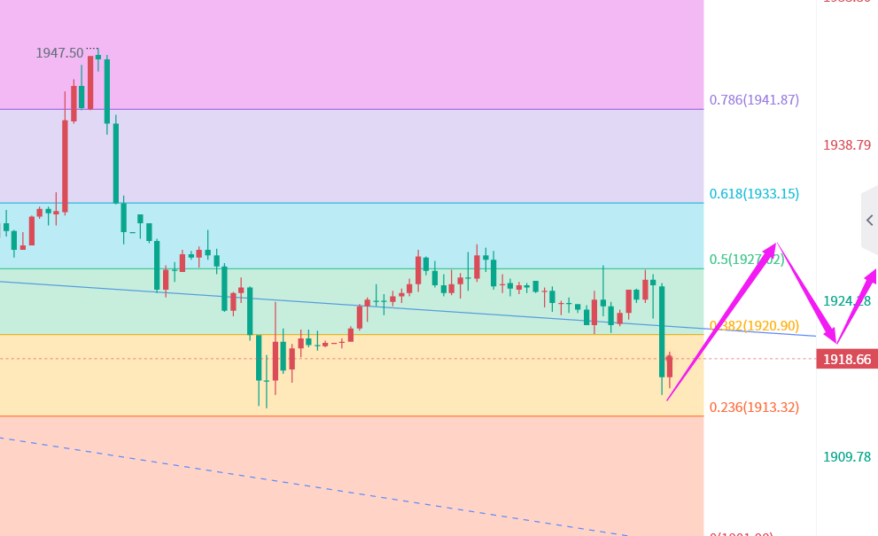 黄金操作建议:建议回踩1910做多,止损1905,目标1925-1930;黄金上涨触及1930-1932直接空,止损1938,目标1920-1918;