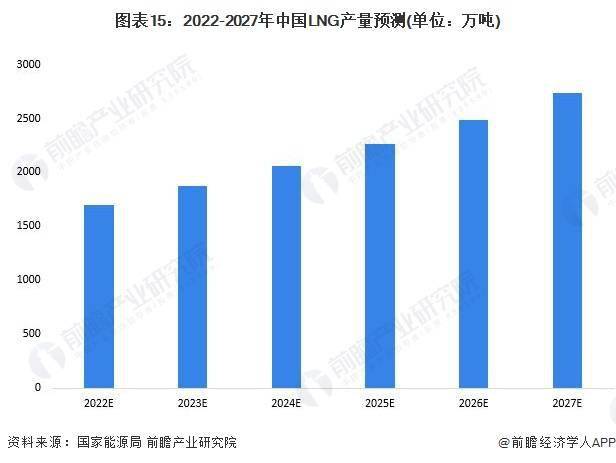 相对于其它能源,LNG具有清洁节能等诸多优势,国家对LNG产业的发展给予了高度的重视,广东、福建、上海、江苏等地纷纷投资兴建LNG项目,这为LNG产业发展创造了良好环境。随着国家对能源需求的不断升温,LNG行业的发展将对优化我国能源结构,有效解决能源供应安全、生态环境保护的双重问题。未来一段时期内,LNG将成为我国天然气市场的主力军。前瞻结合我国宏观经济发展趋势、国家产业支持政策、当前投产LNG项目产能状况,以及下游领域对LNG的需求拉动,预计到2027年我国LNG产量有望超过2700万吨。