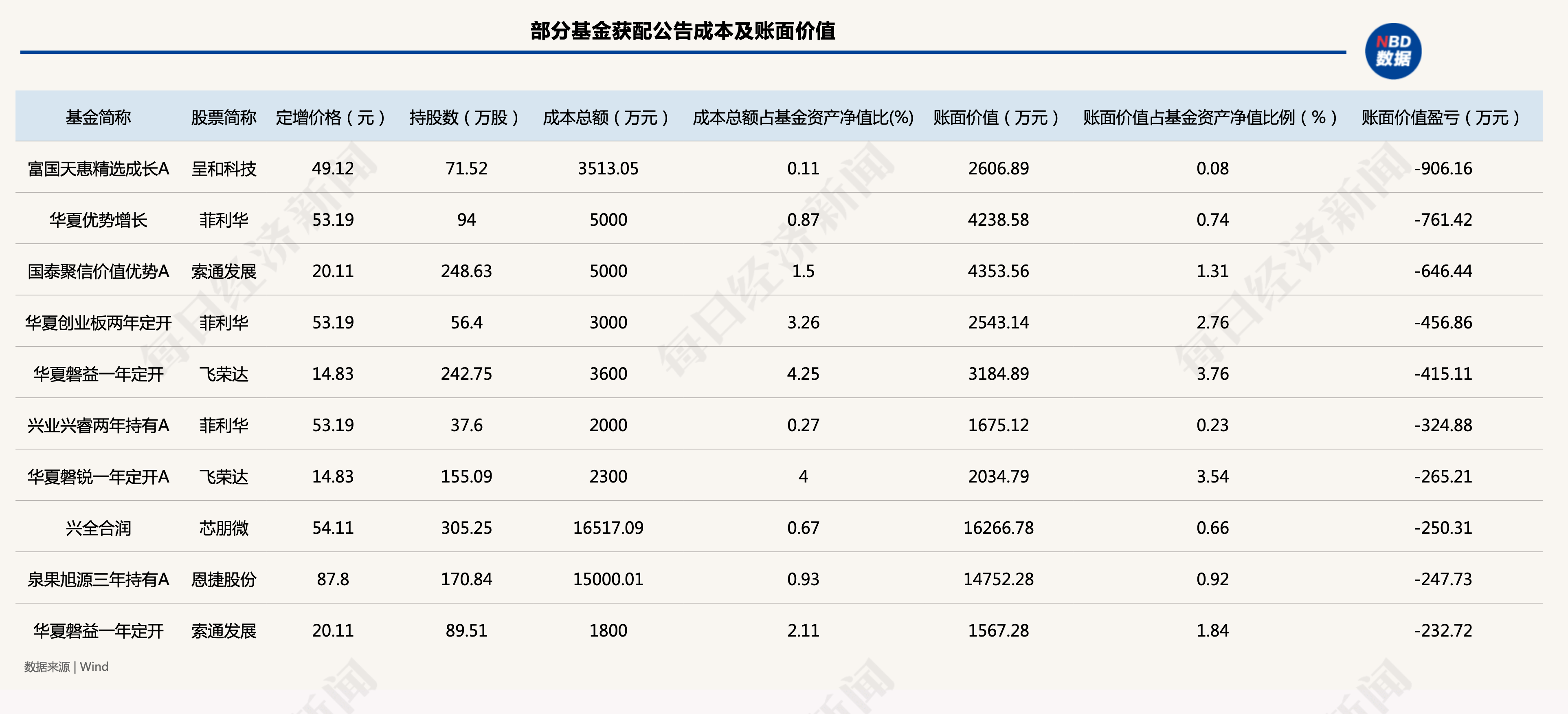 然而,行情的演绎却让这些标的频频出现跌破定增价格的情形,其中不乏昔日的十倍牛股。有的基金在公告获配结果时,就已经出现账面价值低于总成本的情况,部分标的账面亏损已经超过900万元。
