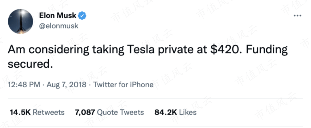 所以面向PIF投来的兴趣,他仿佛抓住救命稻草。激动的马斯克曾于2018年8月7日发了那段著名的推文:“资金已到位”。