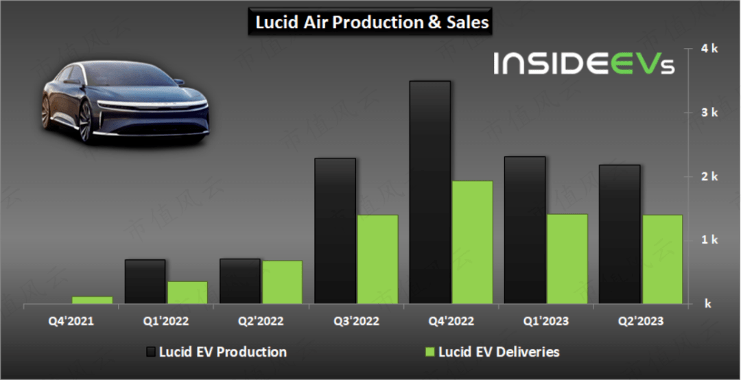 2022年的实际交付量为4,369辆,相比Lucid在SPAC上市时公布在投资者报告的业绩指引(2万辆),只达到2成(21.85%)。