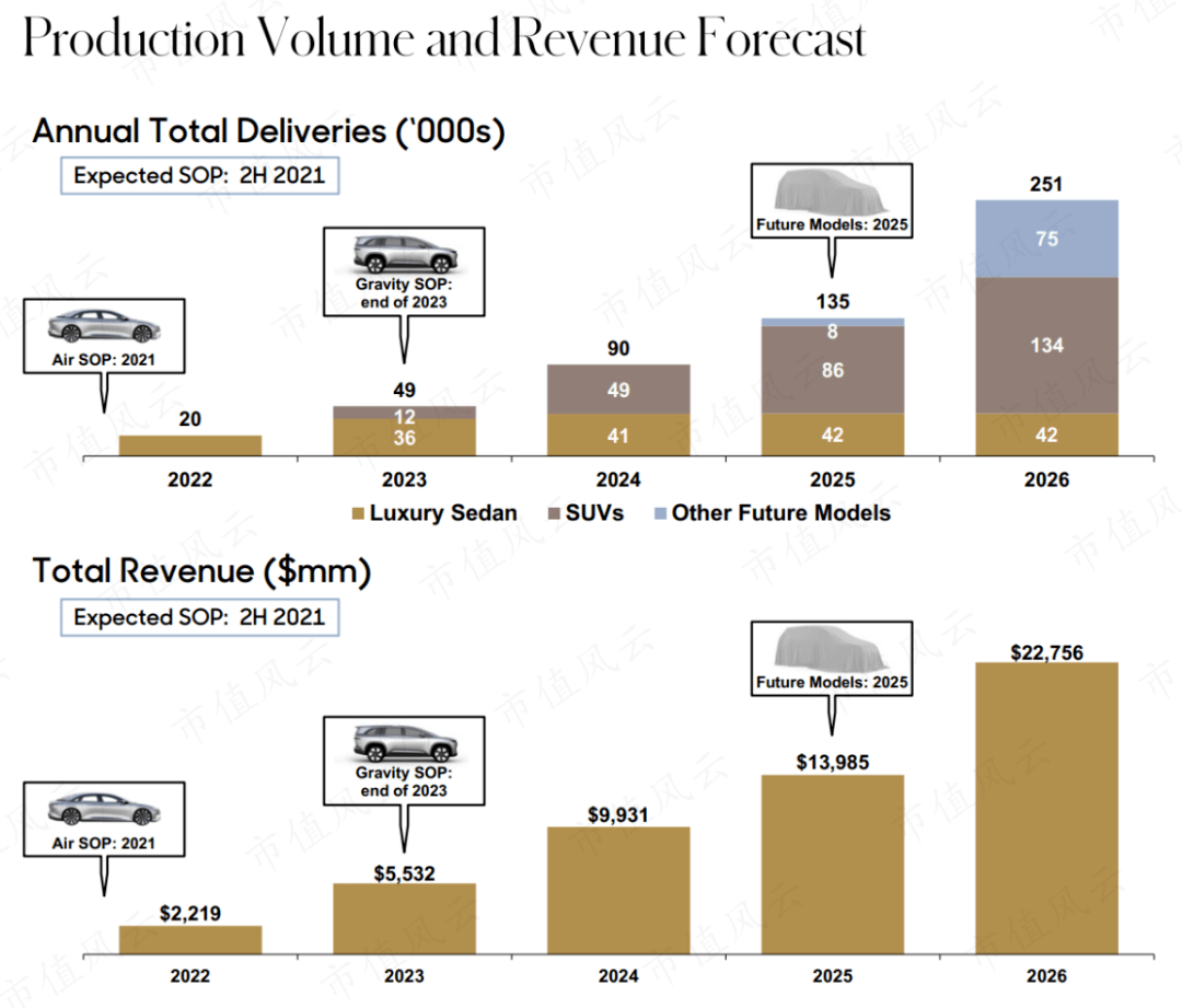(SPAC上市时,公司的业绩指引,来源:Lucid 2021年7月投资者报告)