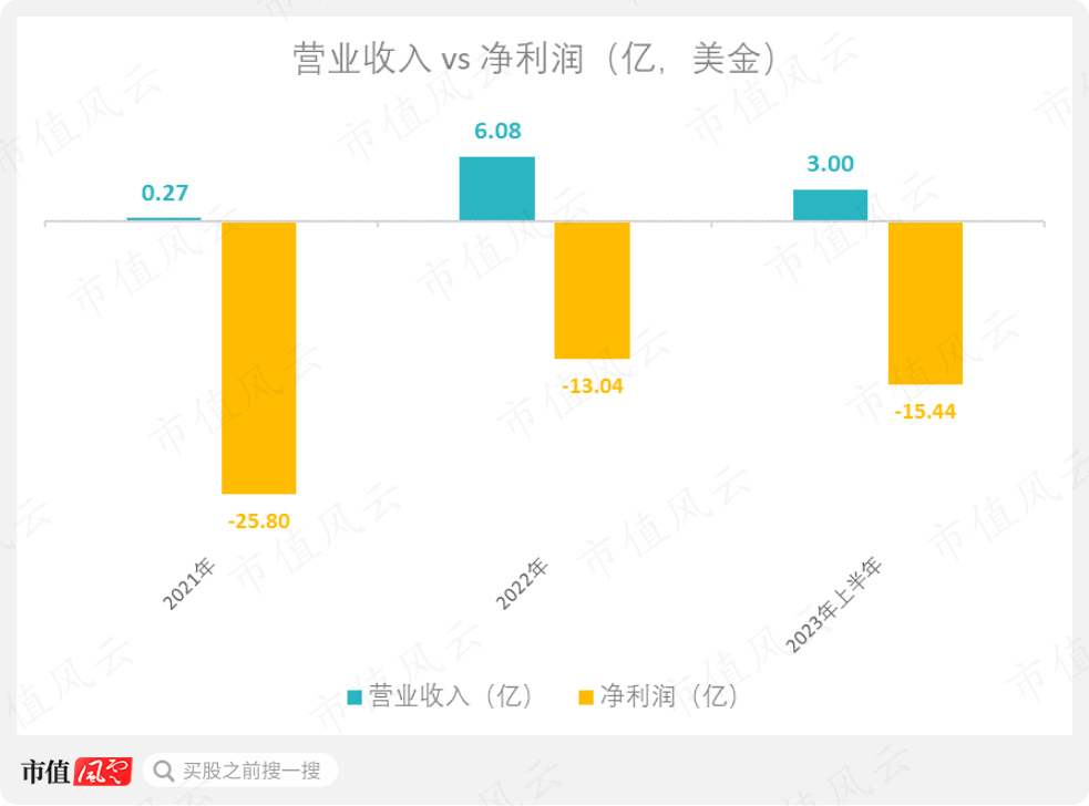 2023年H1,营收3亿(同比+93.73%),净亏损15.44亿,毛利率-251.75%。