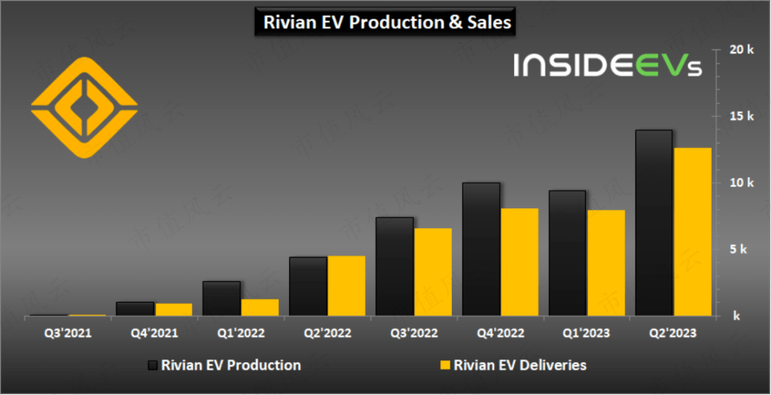 美国车企瑞维安(Rivian),同样系2021年第四季度交付第一辆车,但产销量明显比Lucid好上不少。2022年,瑞维安交付2.03万辆(同比+2,110%),2023年H1交付2.06万辆(同比+262%)。